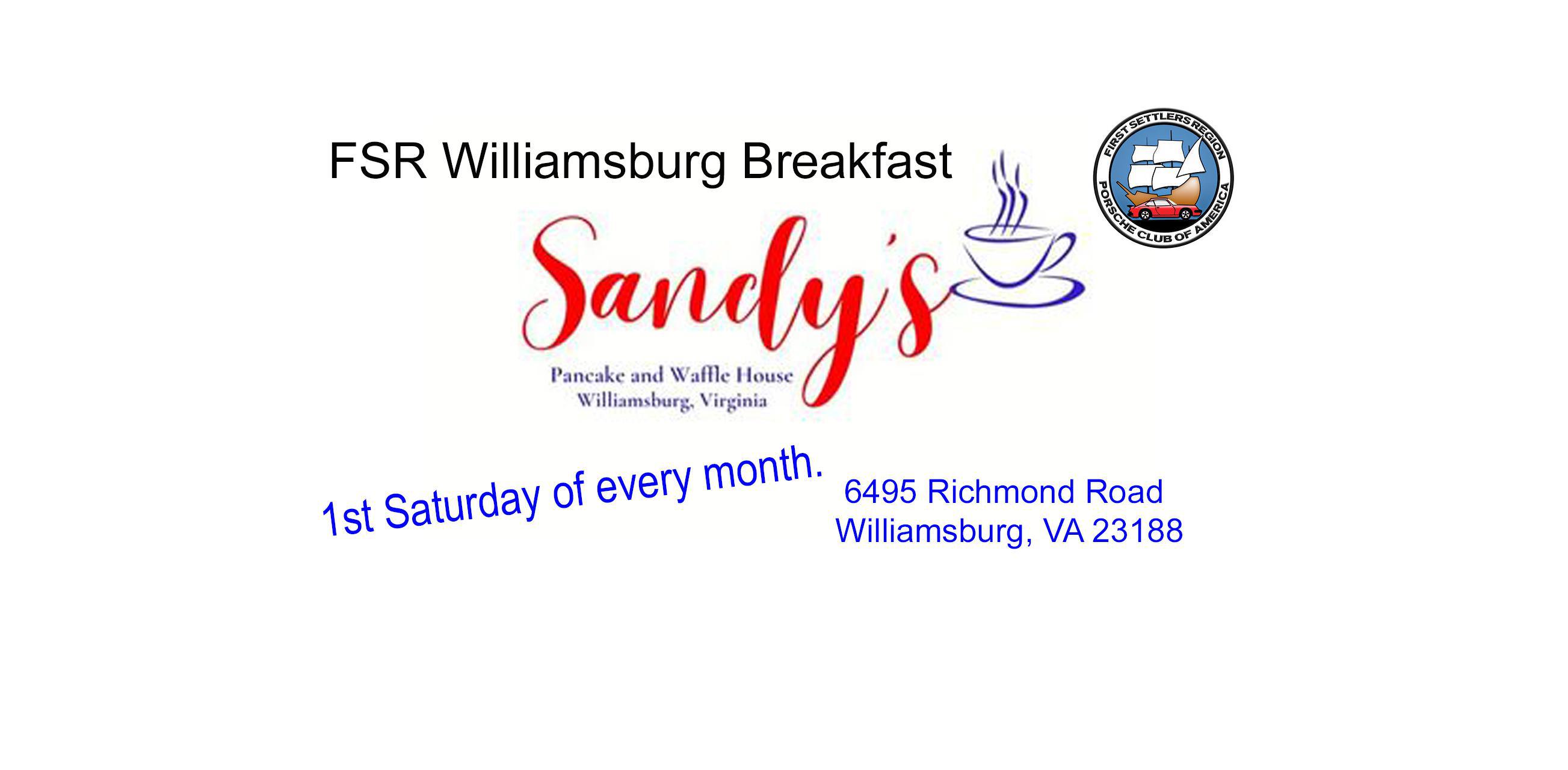 Please join us for our monthly Williamsburg FSR breakfast!